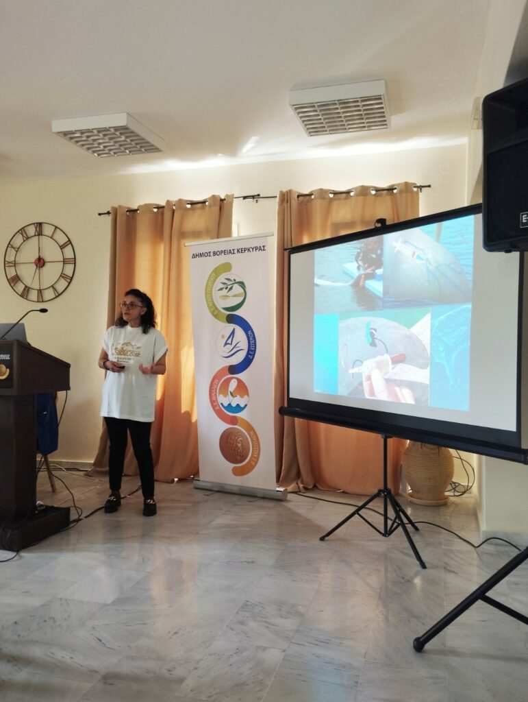 The lectures and the training of the members of the Corfu MPA were held by the President of the Scientific Committee of the National Network for Monitoring and Recording of Marine Wildlife Species Extinctions of the Ministry of Environment and Natural Resources, Dr. Anastasia Komninos (DVM, PhD, Professor of Exotic and Wildlife Surgery-Medicine, Department of Veterinary Medicine), the Vice-Chairman of the Scientific Committee of the National Network for the Monitoring of Marine Wildlife Species Extinctions of the Ministry of Environment and Natural Resources, Dr. Anastasia Komninos (DVM, PhD, Professor of Surgery-Medicine of Exotic and Wildlife, Department of Veterinary Medicine), the Vice-Chairman of the Scientific Committee of the National Network for the Monitoring of Marine Wildlife Extinctions of the Ministry of Environment and Natural Resources, Dr. George Gafas, (Associate Professor of Molecular Biology of Marine Mammal and Fish Conservation, Department of Agriculture, Fisheries and Aquatic Environment (tGIIP), University of Thessaly), Marine Biologist, Elena Akritopoulou (Scientific member of “ARION”, BSc, MSc, PhD(c) Marine Mammal Biomonitoring Unit – Department of Agriculture, Fisheries & Aquatic Environment – University of Thessaly) and Mr. Andreas Kyriazi Veterinarian DVM, member of the team of Veterinarians of the Research Centre for Cetacean Rescue and Care “ARION”.